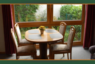 Ein schöner Esstisch mit 4 Stühlen lädt zum Verweilen ein.